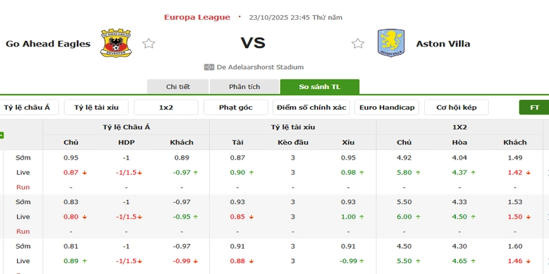 Tỷ kệ kèo Go Ahead Eagles vs Aston Villa